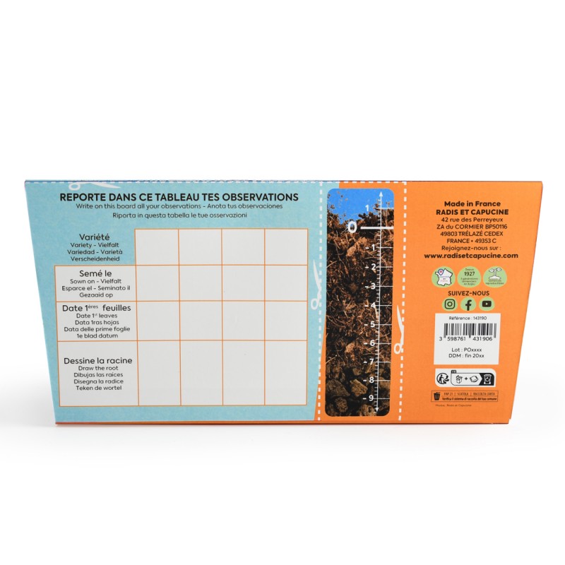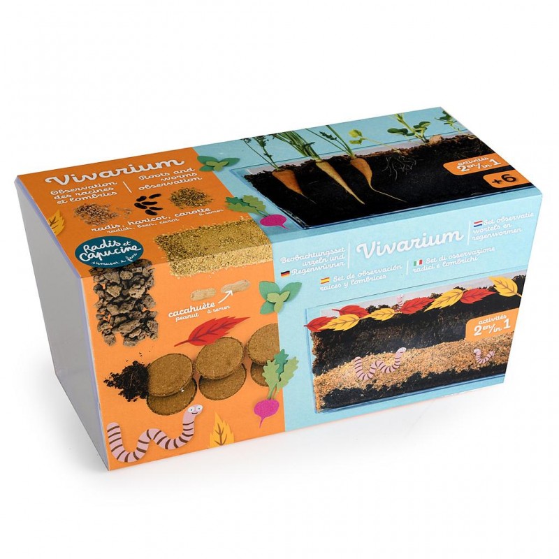 With this fun and playful kit, watch roots grow and worms dig through the soil. A real adventure for young explorers curious about nature!