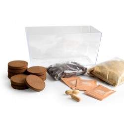 - Important: Keep the packaging around the vivarium. Place seeds near the walls to observe the roots, and cover the walls with the sleeve to prevent roots from escaping the light.