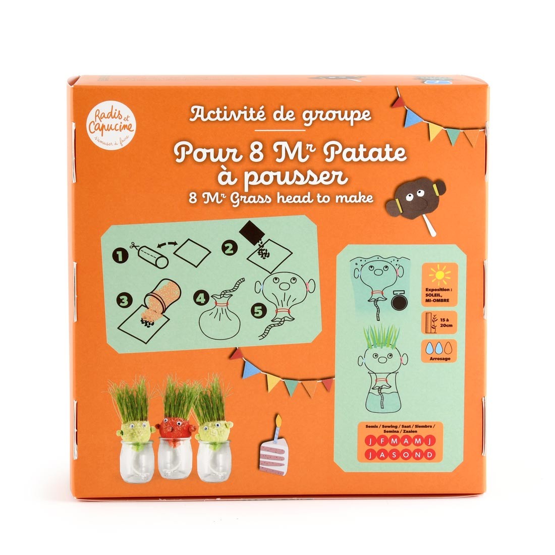 Perfect for birthday parties, school events, or a creative afternoon at home. Easy, fun, and mess-free, this kit allows kids to enjoy gardening while discovering the magic of germination. Each child can also personalize their Mr. Potato Head with eyes, a mouth, a hat… for even more laughs!