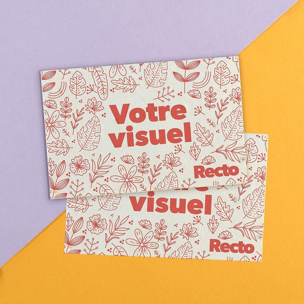 La carte de visite en papier de graines (85 x 55 mm) est le choix indiscutable pour marquer votre différence dès le premier contact. Ce papier unique, d'un grammage qualitatif de 200g, intègre directement les semences dans sa texture.