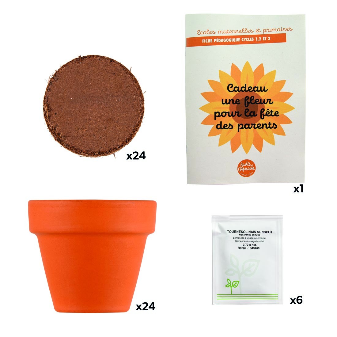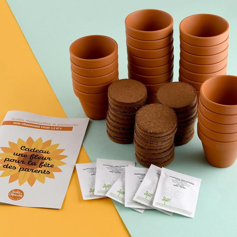 Immerse your students in a world of creativity and nature with our exclusive school activity: the sunflower planting and decorating workshop. Designed specifically for classes of 24 students, this workshop offers an educational and fun experience that will delight both children and teachers. Each child will have the unique opportunity to plant and grow their own sunflower in a terracotta pot, which they can then decorate to their liking.