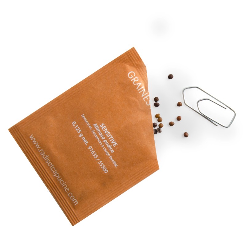 - Sachet de 13x13 cm contenant 0,125 g de graines de Mimosa pudica (sensitive).