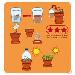 - Sowing: open the bag and pour seeds into your hand. If they are too small, add sand to make it easier to sow. For sowing, sprinkle the seeds on the wet, uncompact coconut soil, a maximum of 2 to 3 seeds per pot. Save the rest of the seeds for later sowing or to sow directly in your garden or on your balcony when the weather is nice. Gently cover the seeds with fertilized coconut soil and tamp lightly.