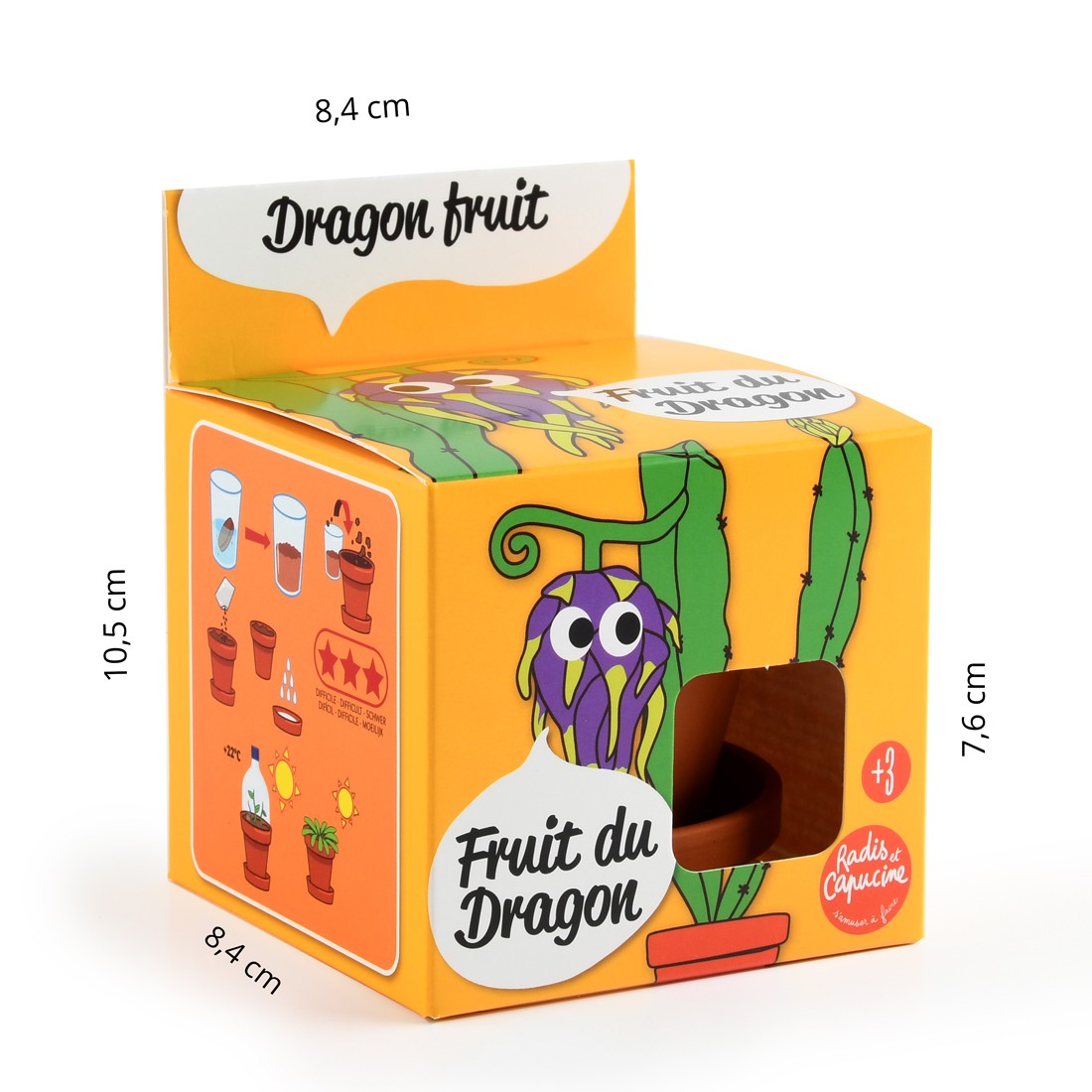 Dragon fruit is an exotic fruit made famous by One Piece (anime). Grow your dragon fruit, start in the small pot then replant it in a larger pot. Gift idea for children, affordable gift, assembled in France, with germinative dragon fruit seeds. Pot growing instructions in English, German, Italian, and Spanish.
