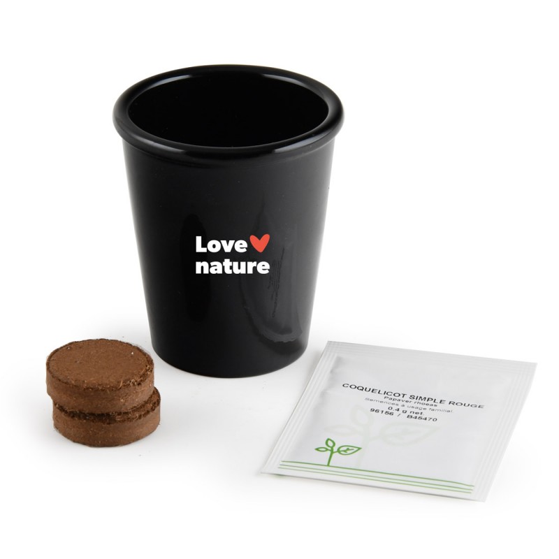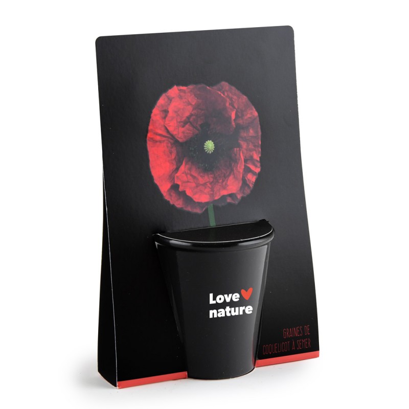 Planting kit with soil and seeds to grow the poppy flower at home. With the black growing pot, the red color is more vibrant, a beautiful promise of the upcoming bloom. This complete sowing kit allows you to start sowing and cultivation at any time of the year, indoors. Gardening gift idea, gift idea for women, assembled in France, delivered with red poppy seeds, reproducible and germination guaranteed.