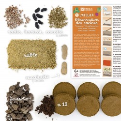 Our advice: earthworms are living creatures that you need to find in your garden by turning over some soil with a shovel, then feeding them with dead leaves on top of the soil and watering your vivarium regularly! Sow the seeds along the wall so that you can see the roots, and leave the cover in place to prevent the roots (which are afraid of light) from hiding in the middle so that you can't see them.