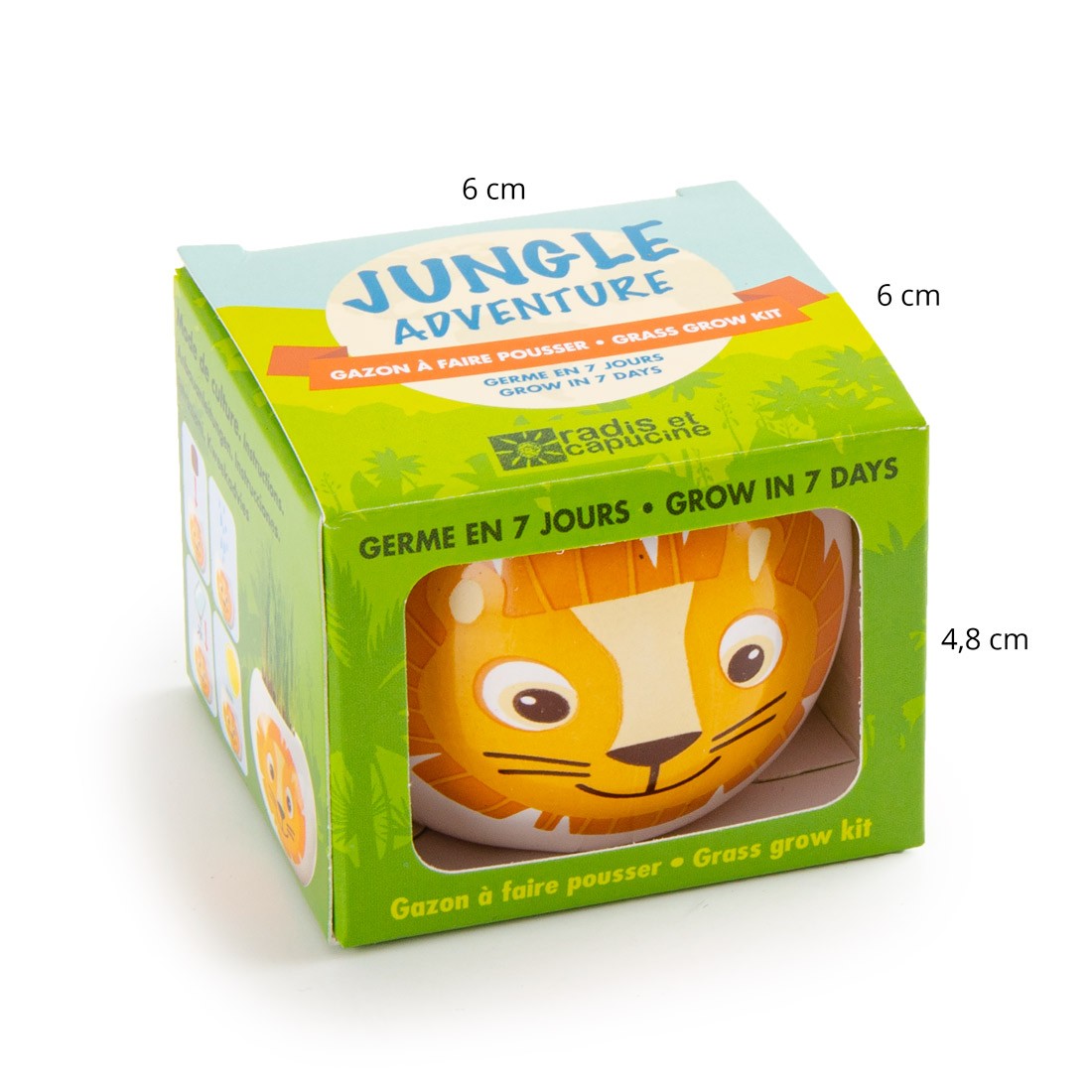 - A fun and educational activity: this kit allows children to grow grass, giving them the opportunity to observe the life cycle of plants. This stimulates their curiosity, develops their patience, and empowers them while reconnecting them to nature.