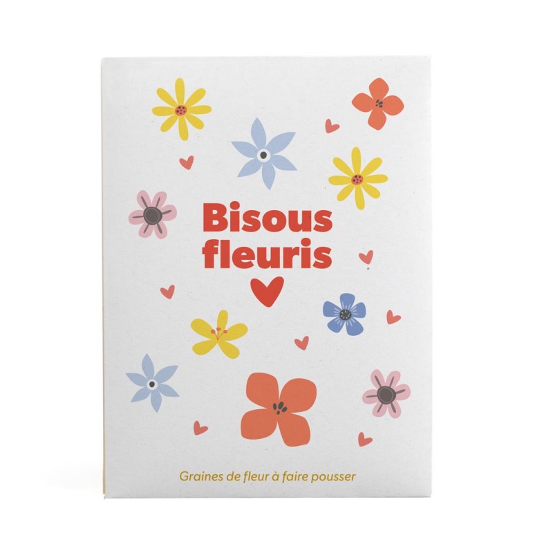 A flower seed pack with the tender message: “Bisous fleuris” meaning Flowery kisses. A poetic and colorful gesture to grow nature and affection.