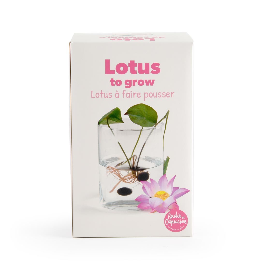 Indoor Pink Lotus Cultivation. Grow an authentic Asian Lotus at home in a beautiful vase to germinate the lotus seeds. The seeds will sprout in water, creating a serene and relaxing display. This set includes a glass vase and decorative glass beads. A zen gift and decorative indoor plant, delivered with germinating lotus seeds. Assembled in Angers, with lotus care and cultivation instructions included in English, German, Italian, and Spanish.