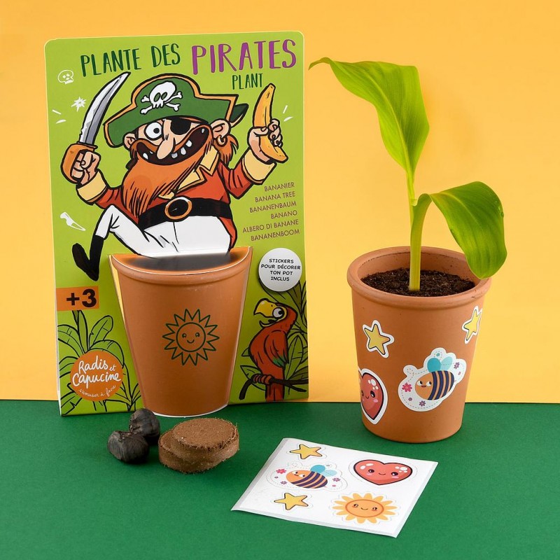 - Une aventure de pirate à vivre chez soi : Avec ce kit, chaque enfant devient un vrai pirate des tropiques ! Il part à la recherche de trésors végétaux en faisant pousser un bananier, comme s’il découvrait une île mystérieuse.