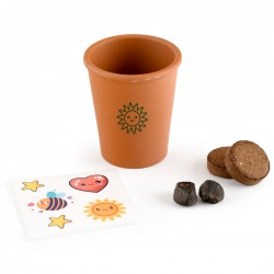- Terre de coco : Avant d’embarquer pour l’aventure, prépare ton butin ! Plonge les pastilles de coco dans 5 à 6 fois leur volume d’eau. Comme un coffre au trésor qui déborde de richesses, elles vont gonfler en quelques minutes. Quand elles sont bien gonflées, remue-les avec une cuillère pour obtenir une belle terre fine, et remplis ton petit pot de pirate. Garde un peu de terre pour recouvrir les graines après le semis.