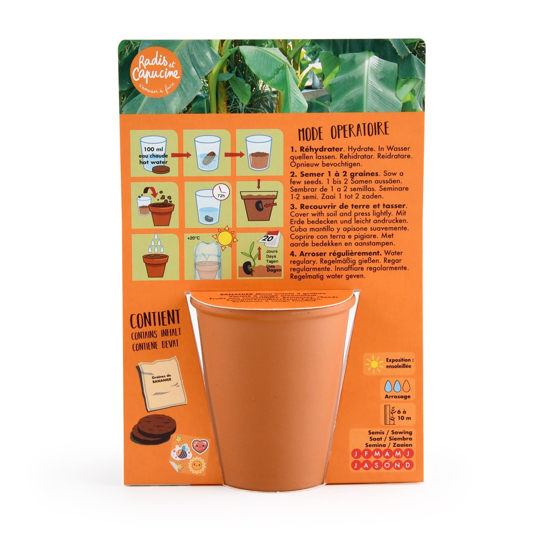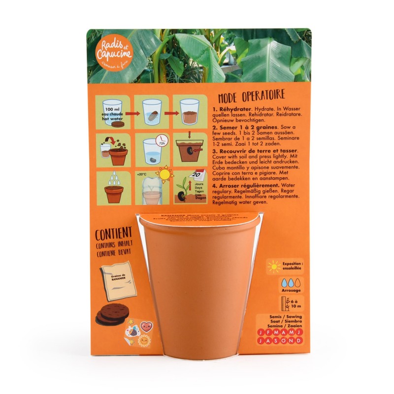 - Un kit ludique et pédagogique : En semant, arrosant et observant la pousse de son bananier, l’enfant découvre le monde végétal tout en développant son sens de l’observation, sa responsabilité… et son imagination !