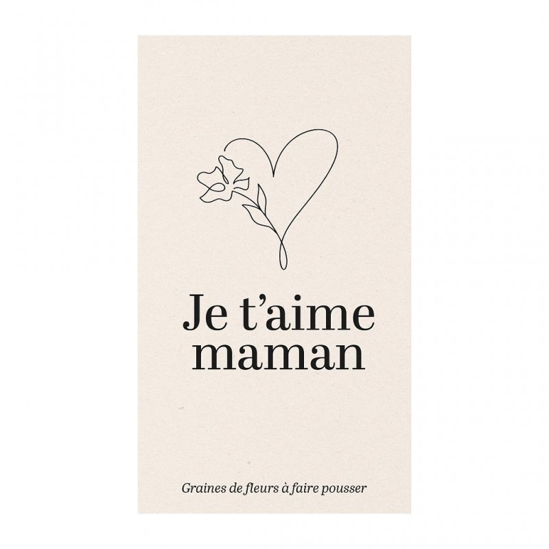 Un sachet de graines de fleurs en mélange avec un message tendre : « Maman je t’aime ». Une idée cadeau poétique et colorée pour faire pousser l’amour et la nature.