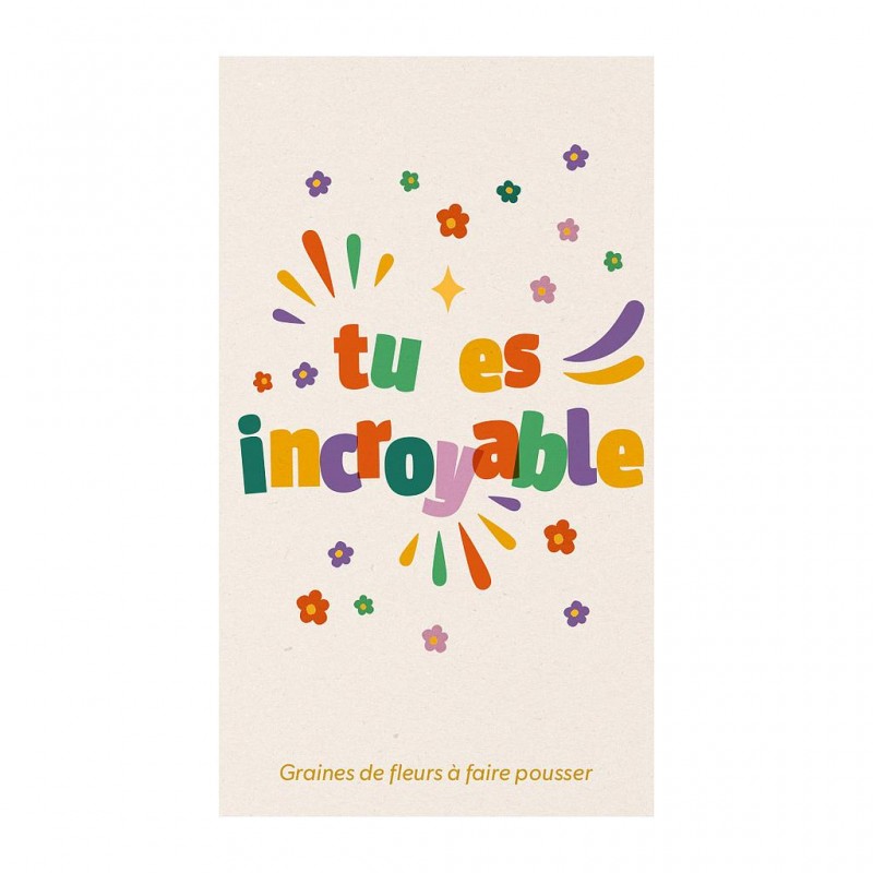 Un sachet de graines de fleurs en mélange avec un message motivant : « Tu es incroyable ». Un cadeau poétique et coloré pour surprendre et faire sourire.