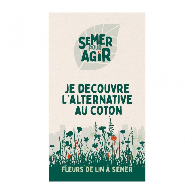 Agissez pour la planète avec ce sachet Semer pour agir – Je découvre l’alternative au coton. Il contient un mélange de graines de fleurs de lin, faciles à cultiver chez soi, qui permettent de découvrir des alternatives écologiques au coton classique.