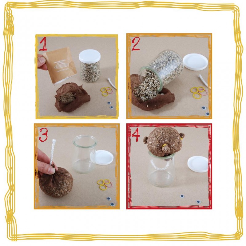 Chaque tête à pousser est fabriquée à partir de matériaux réutilisables et remplie de graines de gazon qui, une fois arrosées, se transforment en une chevelure verte et vivante. Ce projet amusant permet aux enfants d’observer le cycle de vie des plantes, de comprendre les besoins essentiels à leur croissance (eau, lumière, nutriments) et de développer leur autonomie et leur sens des responsabilités.