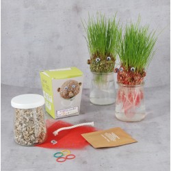Avec ce coffret, les élèves auront l'occasion de fabriquer leur propre ""tête à pousser"", une activité manuelle amusante qui leur permet de créer une petite tête en tissu ou en carton rempli de graines qui, une fois arrosées, pousseront des cheveux en herbes. Ce projet offre une approche ludique pour apprendre les bases de la croissance des plantes tout en développant leur créativité.