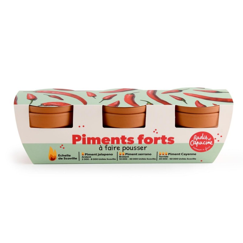 - 3 sachets de graines : piment jalapeno, piment serrano et piment Cayenne