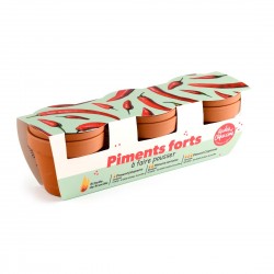 Cultivez facilement trois variétés de piments, du doux au plus relevé, avec ce kit jardinage complet. Trois pots en terre cuite pour un potager piquant, même en intérieur ou sur balcon.