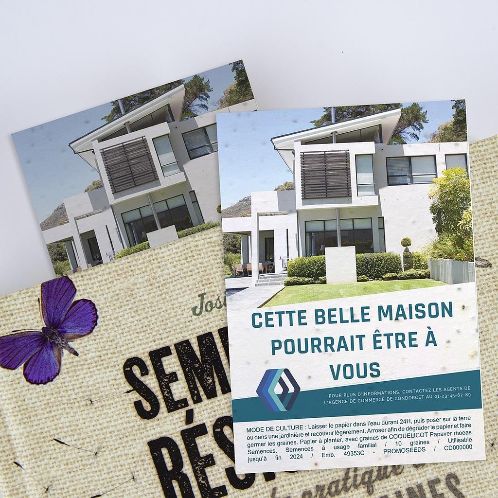 Que vous soyez un commerçant pour vos cartes de remerciement, une marque pour vos étiquettes produits ou une institution, ce format incarne à la perfection la durabilité. Il offre une expérience sensorielle exceptionnelle : après lecture, il suffit de mettre la carte en terre pour donner naissance à de magnifiques fleurs.