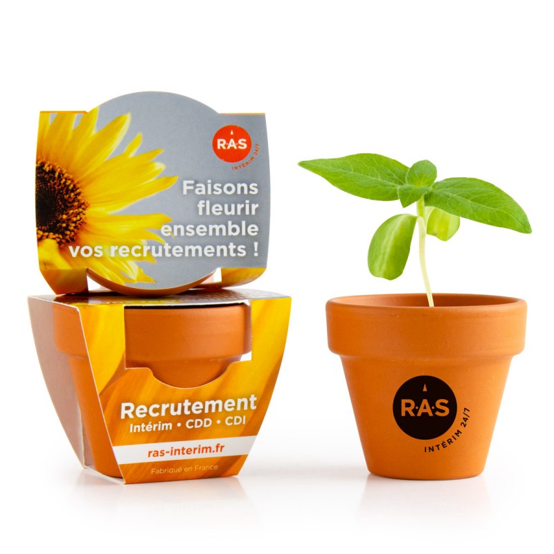 Le kit de plantation avec son pot en terre cuite de 55 mm est le choix indiscutable pour une communication authentique et universelle. Ce support historique, qui réunit la noblesse de l'argile et la magie de la croissance, transforme un objet publicitaire en un véritable petit jardin de bureau.