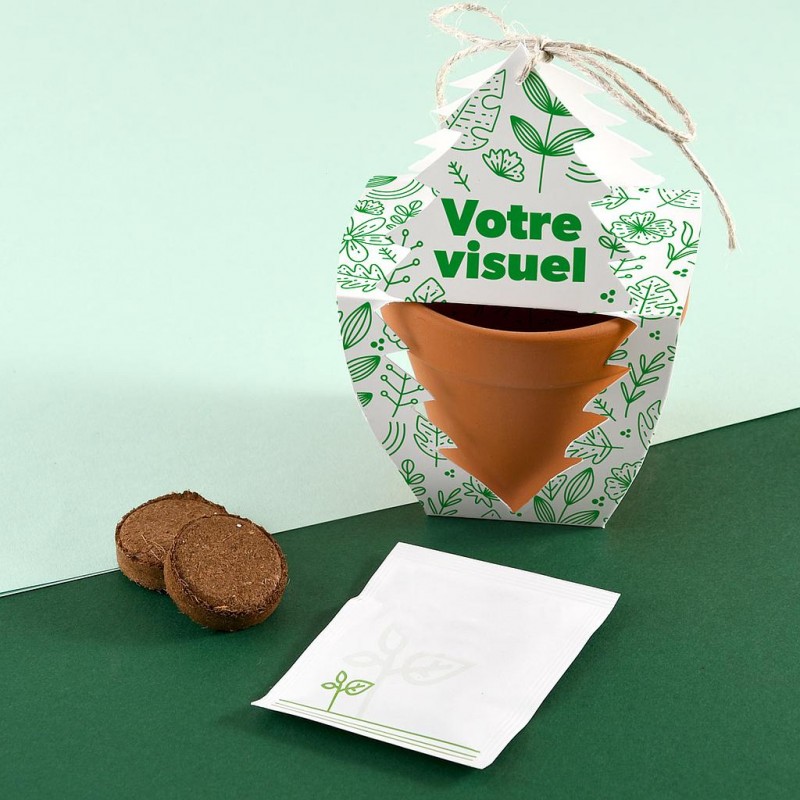 Le kit de plantation de Noël (pot 80 mm) est le choix indiscutable pour offrir un cadeau de fin d'année porteur de sens. Ce support chaleureux, qui permet de faire germer son propre petit sapin au coin du feu, transforme un objet publicitaire en un véritable souvenir de fête.