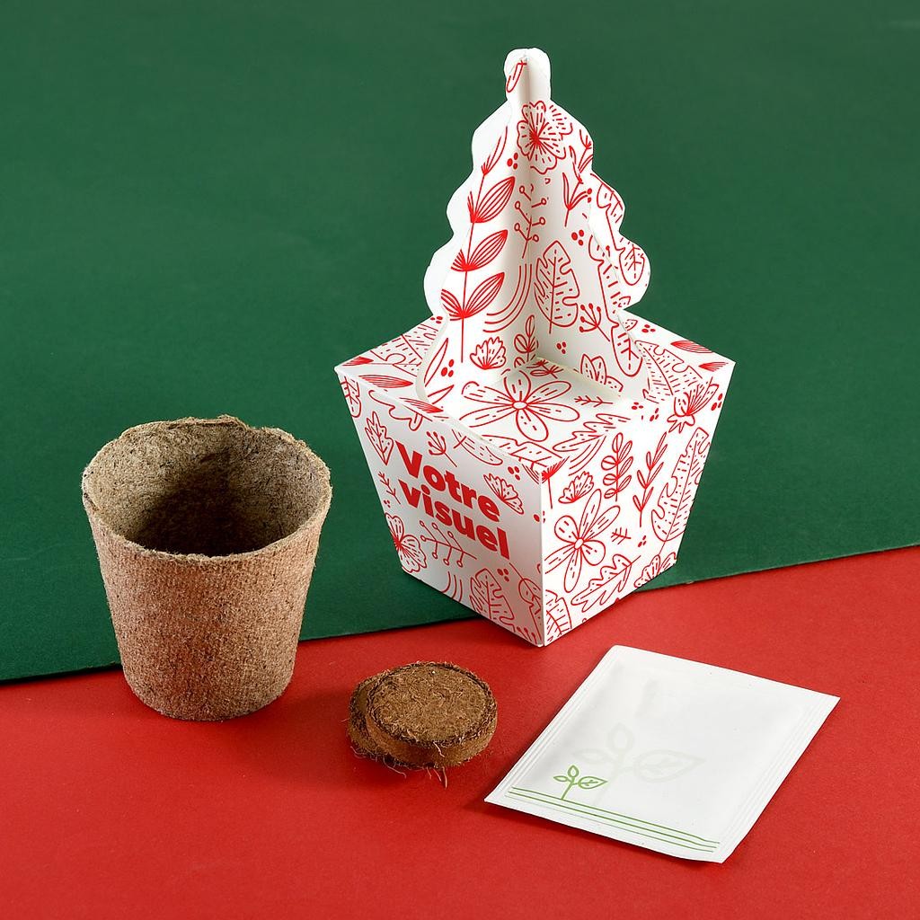 Le kit de plantation de Noël avec emballage festif est le choix indiscutable pour offrir une communication pétillante et sur-mesure. Nous vous incitons à concevoir un visuel riche et décoratif pour ce support, afin de faire honneur à tout son potentiel et de transformer son packaging en un véritable sapin orné.