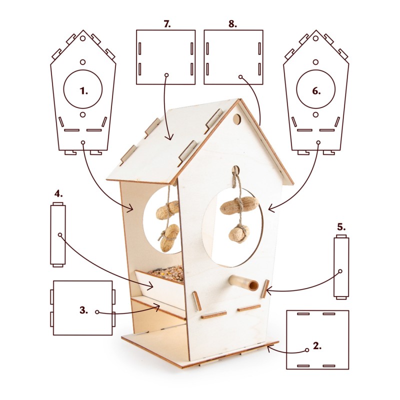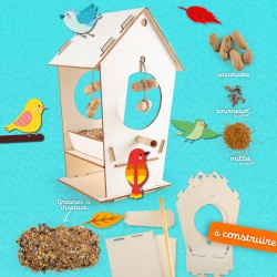 Kit a monter mangeoir a oiseau. Comment nourrir les oiseaux en hiver ? Lorsque les graines, les fruits et les insectes se font rares, il est important d?apporter un complément de nourriture aux oiseaux des villes et des jardins. Ce cadeau enfant est un jeu de montage loisirs créatifs avec graines incluses.