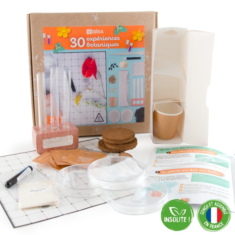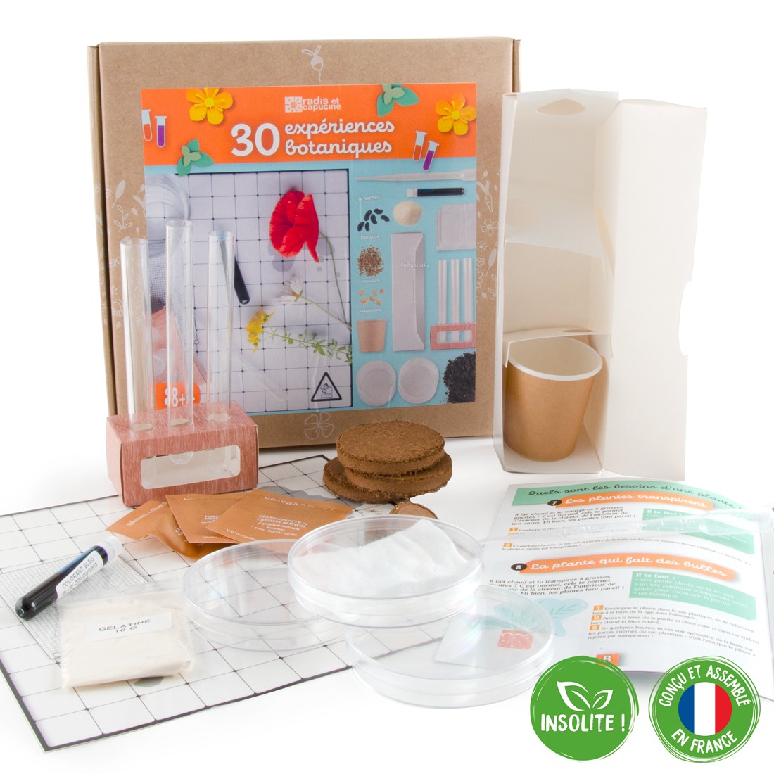 Grâce à ce coffret de 30 expériences botaniques tu vas pouvoir percer les mystères du monde végétal. Le rôle de la lumière, la circulation de la sève, les mécanismes de la germination, toutes les étapes de la vie de la plante expliquées par des expérimentations faciles décrites avec simplicité.