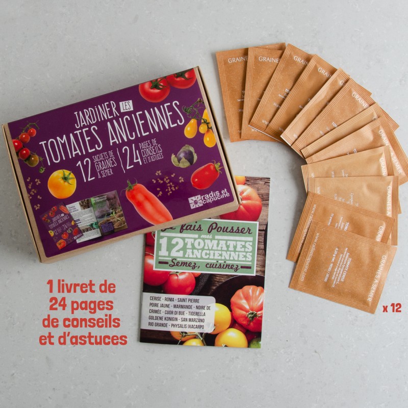 La tomate est un des légumes les plus variés en formes, en couleurs et en saveurs. Ce coffret de 12 variétés de Tomates anciennes permet de cultiver et récolter ce légume ou ce fruit, comme on voudra, avec tous les conseils de notre jardinier.