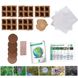 Comment aborder le développement durable avec des plantes solutions en maternelle ou en primaire ? Grâce a ce kit, les élèves vont pouvoir aborder le thème de la biodiversité (faire pousser des fleurs qui vont nourrir les pollinisateurs comme les papillons et les abeilles, semer des plantes grimpantes de volubilis pour colorer la cour de récréation ou les gouttières, replanter des arbres pour créer des puits de carbone) des habitudes de consommation (découvrir le lin comme une alternative au coton), de l'alimentation (on peut manger du basilic poussé dans la classe meme en plein hiver sans qu'il prenne le camion et goûter des alternatives à la viande en faisant pousser des légumineuses). Livré avec projet pédagogique cycle 2 et 3.
