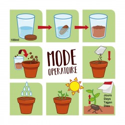 - La terre fertilisée : pour favoriser une germination réussie, commencez par faire tremper les pastilles de terre de coco fertilisées dans 5 à 6 fois leur volume d'eau : elles gonfleront instantanément. Délayez-les et remplissez le pot avec une cuillère. N'oubliez pas de conserver une petite partie pour recouvrir les graines après le semis. Le semis des graines d'herbe à chat
