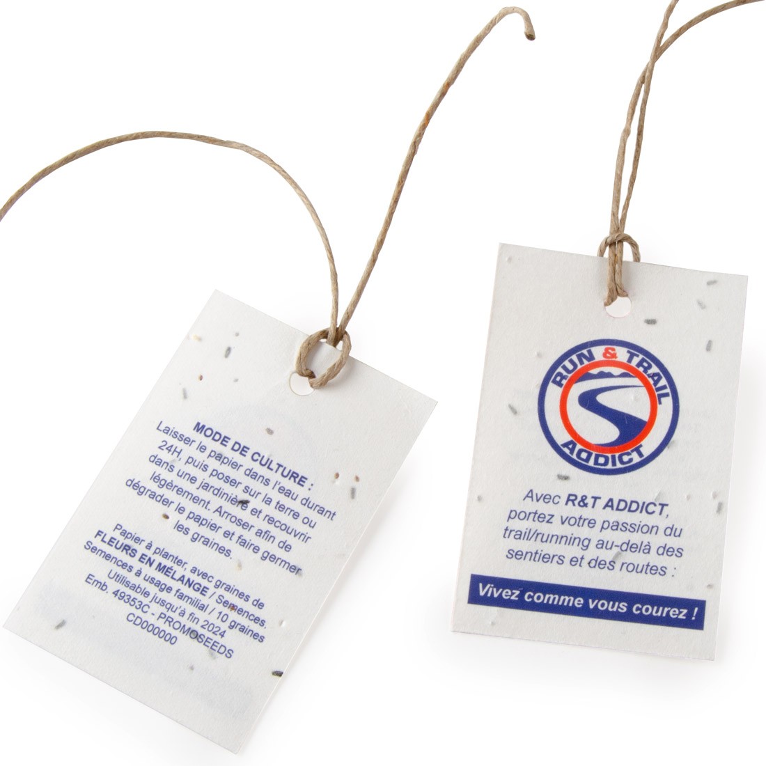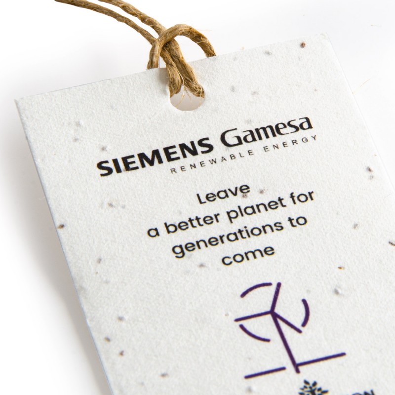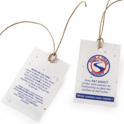 étiquette en papier de graines 140g avec un trou et un petit bout de ficelle