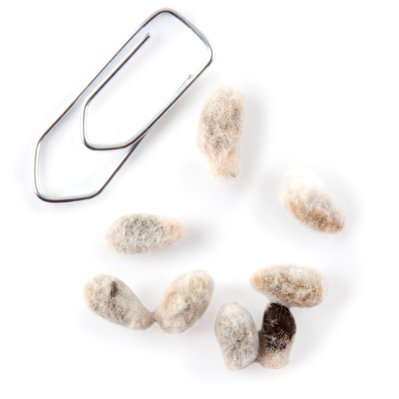 - Semer les graines de coton : Ouvrez le sachet et versez les graines dans votre main. Pour semer, saupoudrez les graines sur la terre humide non compacte, 2 à 3 graines maximum par pot en les enfonçant de 5 mm dans la terre. Conservez les graines restantes pour un semis ultérieur ou pour semer directement dans votre jardin ou sur votre balcon par temps ensoleillé. Recouvrez délicatement les graines de terre de coco fertilisée et tassez légèrement.