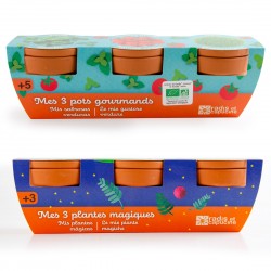 Découvrez la joie de cultiver vos propres plantes gourmandes avec notre trio de pots et offrez à vos enfants une expérience de jardinage enrichissante et délicieuse !
