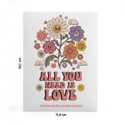Un sachet de graines fleuries accompagné du message « All you need is Love ». Offrez un geste poétique et coloré qui fait pousser l’amour et la nature.