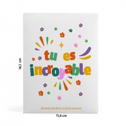 Un sachet de graines de fleurs en mélange avec un message motivant : « Tu es incroyable ». Un cadeau poétique et coloré pour surprendre et faire sourire.